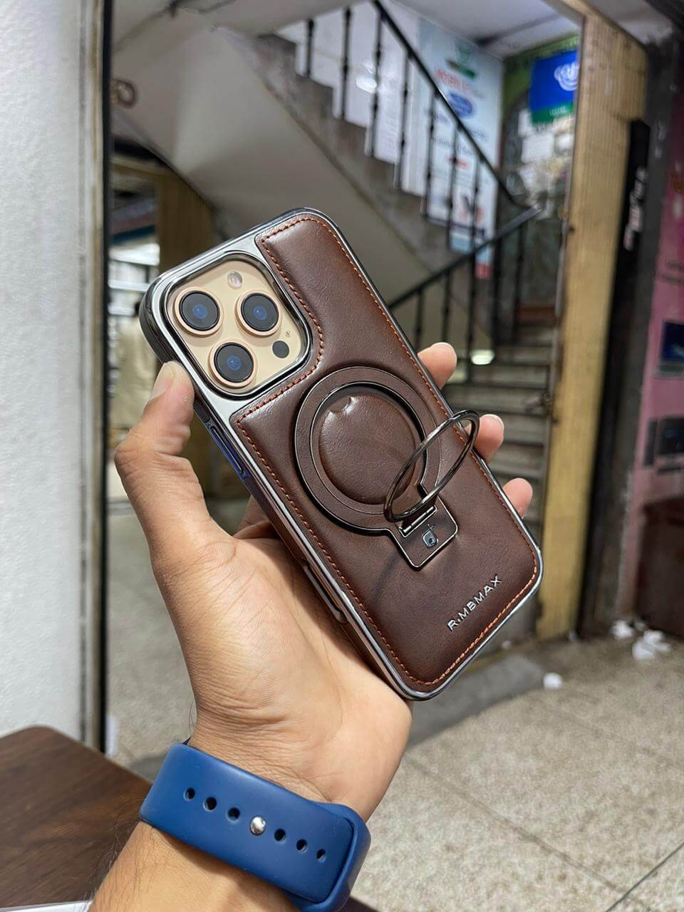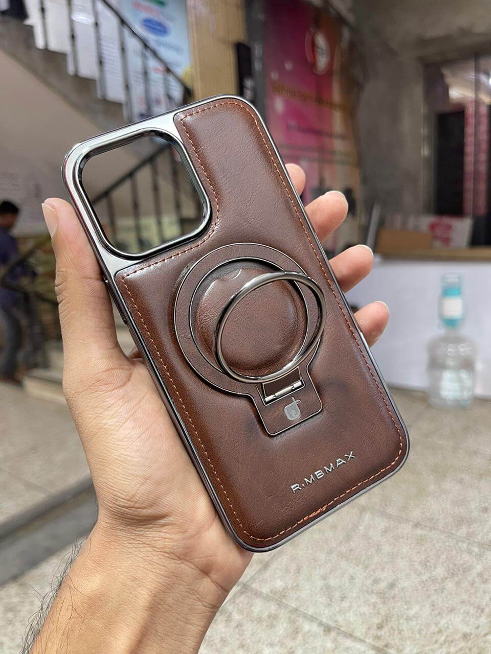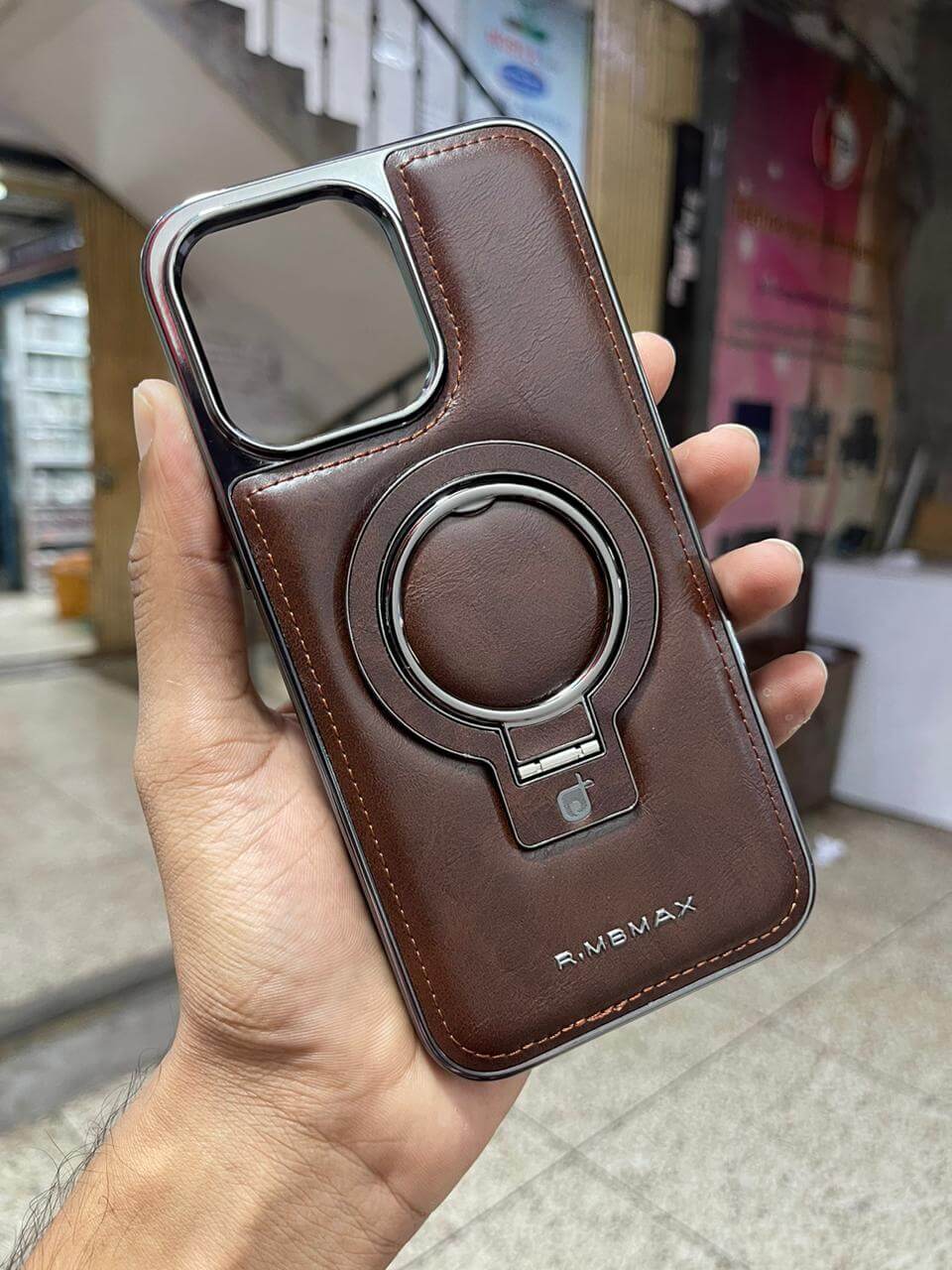 Premium RMBMAX Leather Magsafe Stand Case For iphone 12 to 16 Pro Max